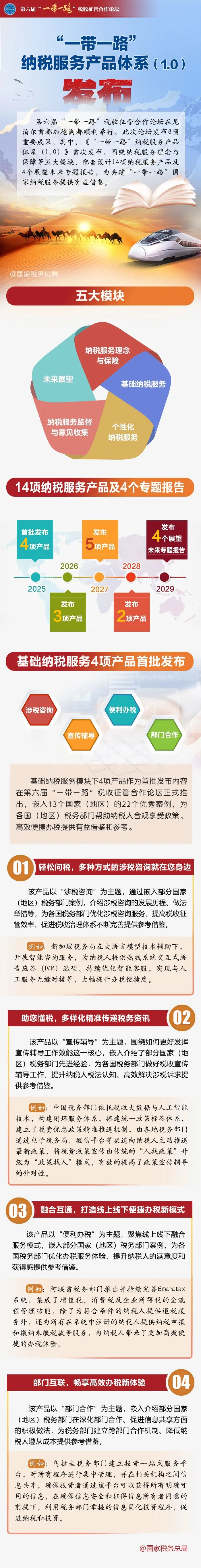 第六屆“一帶一路”稅收征管合作論壇在尼泊爾首都加德滿都順利舉行,此次論壇發(fā)布8項(xiàng)重要成果。其中,《“一帶一路”納稅服務(wù)產(chǎn)品體系(1.0)》首次發(fā)布,集成展示共建“一帶一路”國(guó)家通過(guò)納稅服務(wù)促進(jìn)稅收遵從的豐富實(shí)踐,為優(yōu)化營(yíng)商環(huán)境提供參考和借鑒。一圖了解相關(guān)內(nèi)容↓