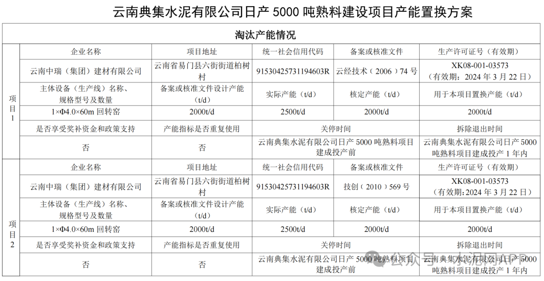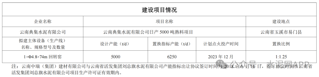 云南典集水泥有限公司申請撤銷“云南典集水泥有限公司日產(chǎn)5000噸熟料建設項目產(chǎn)能置換方案”。按照原計劃,該企業(yè)擬建一條5000t/d熟料生產(chǎn)線,退出產(chǎn)能來自云南中瑞(集團)建材有限公司2條2000t/d、元江縣永發(fā)水泥有限公司1000t/d、祥云縣建材(集團)有限責任公司1000t/d、云南省活發(fā)集團劉總旗水泥有限公司2500t/d(用于本項目250t/d)共計5條生產(chǎn)線。