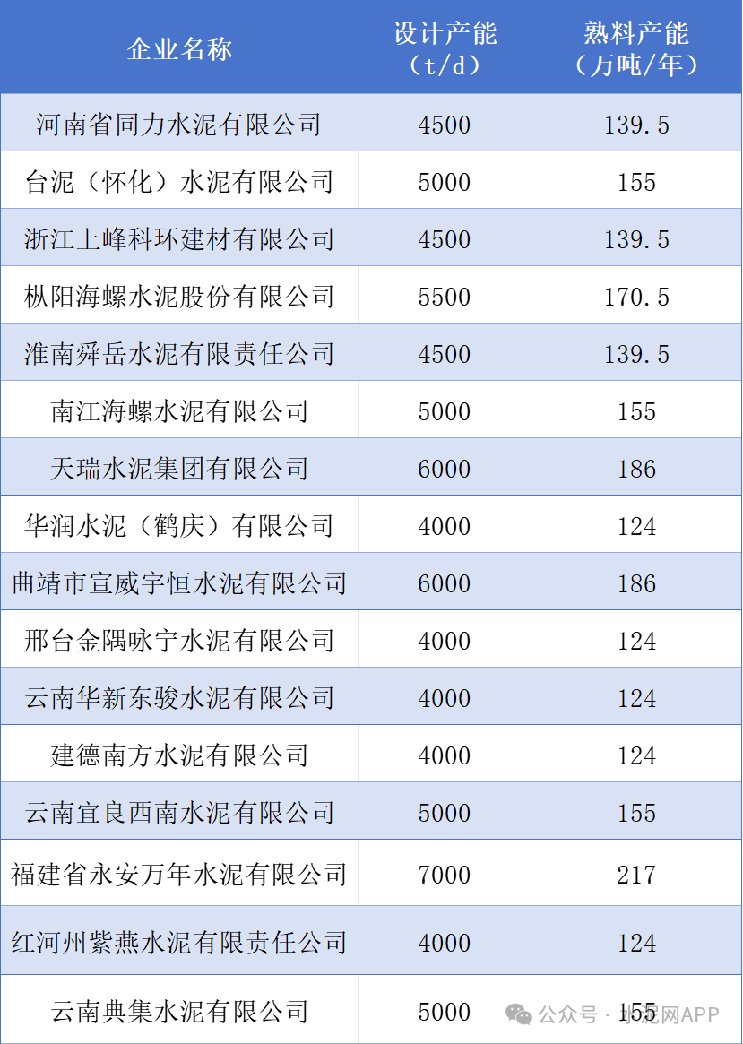 據(jù)統(tǒng)計,今年以來,已有16條水泥熟料生產(chǎn)線建設項目不再推進,合計年產(chǎn)能2418萬噸(按照310天計算),詳情見下表:
