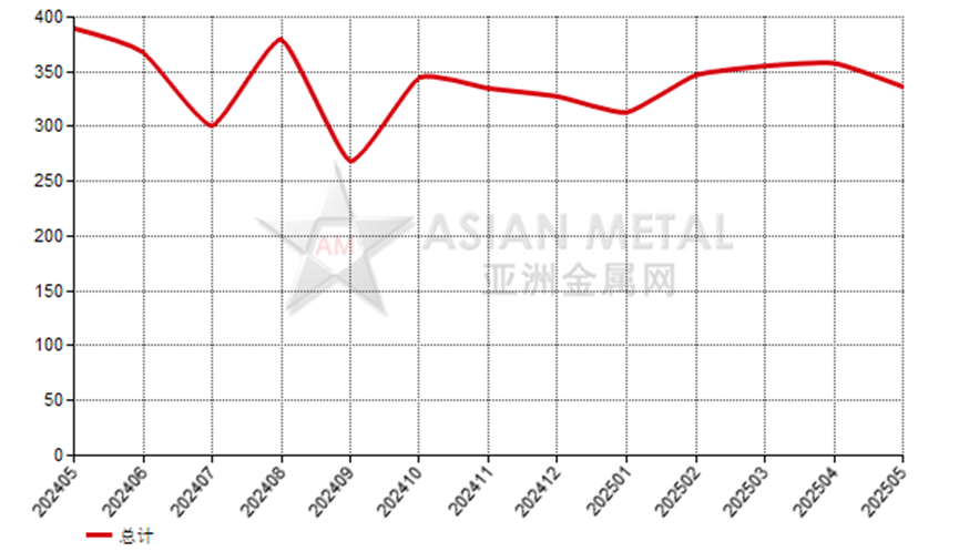 2025年1-5月,巴西累計出口鎂砂106,659.19公噸,去年同期為83,996.54公噸,同比上漲26.98%。