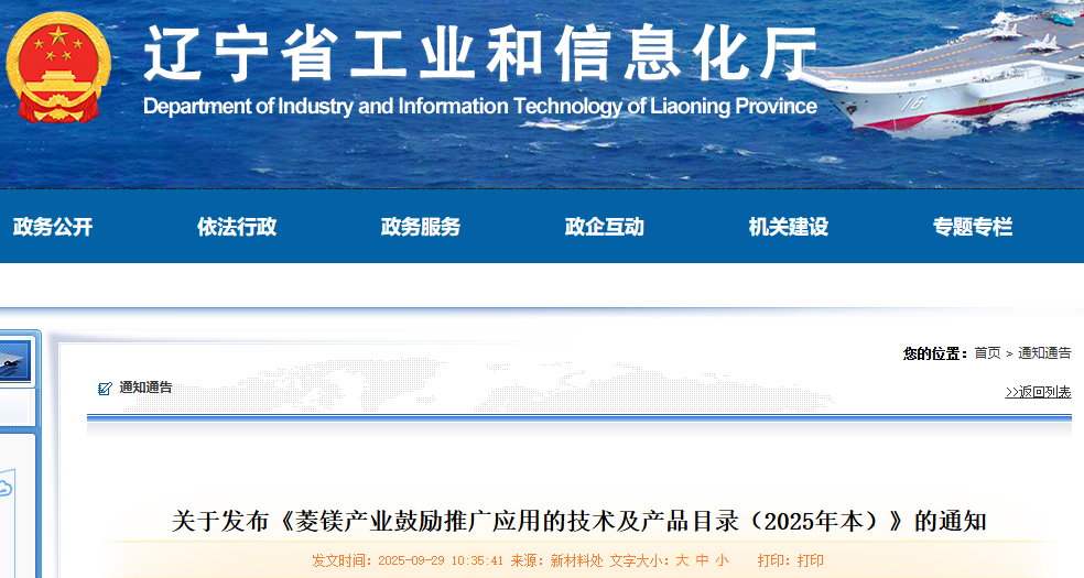 按照《遼寧省人民政府辦公廳關(guān)于推進(jìn)菱鎂行業(yè)高質(zhì)量發(fā)展的實(shí)施意見》(遼政辦發(fā)〔2023〕15號)精神,為持續(xù)搭建技術(shù)交流平臺,推動新技術(shù)、新產(chǎn)品成果轉(zhuǎn)化,加快菱鎂行業(yè)發(fā)展形成新質(zhì)生產(chǎn)力,深入推進(jìn)行業(yè)高質(zhì)量發(fā)展,省工業(yè)和信息化廳組織征集已經(jīng)進(jìn)入或接近產(chǎn)業(yè)化應(yīng)用階段的新技術(shù)、新產(chǎn)品,經(jīng)相關(guān)專家論證、廳門戶網(wǎng)站公示后,編制形成《菱鎂產(chǎn)業(yè)鼓勵推廣應(yīng)用的技術(shù)及產(chǎn)品目錄(2025年本)》,現(xiàn)予發(fā)布。請做好目錄的推廣應(yīng)用和指導(dǎo)。