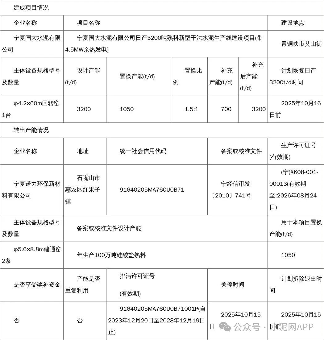 9月29日,寧夏回族自治區(qū)工業(yè)和信息化廳發(fā)布公告,按照工業(yè)和信息化部《水泥玻璃行業(yè)產(chǎn)能置換實施辦法(2024年本)》(工信部原〔2024〕206號)有關(guān)要求,經(jīng)現(xiàn)場核查驗收,寧夏諾力環(huán)保新材料有限公司產(chǎn)能出讓轉(zhuǎn)移至寧夏國大水泥有限公司的水泥熟料生產(chǎn)線,主體設(shè)備已拆除,不具備恢復生產(chǎn)熟料能力,現(xiàn)予公告。