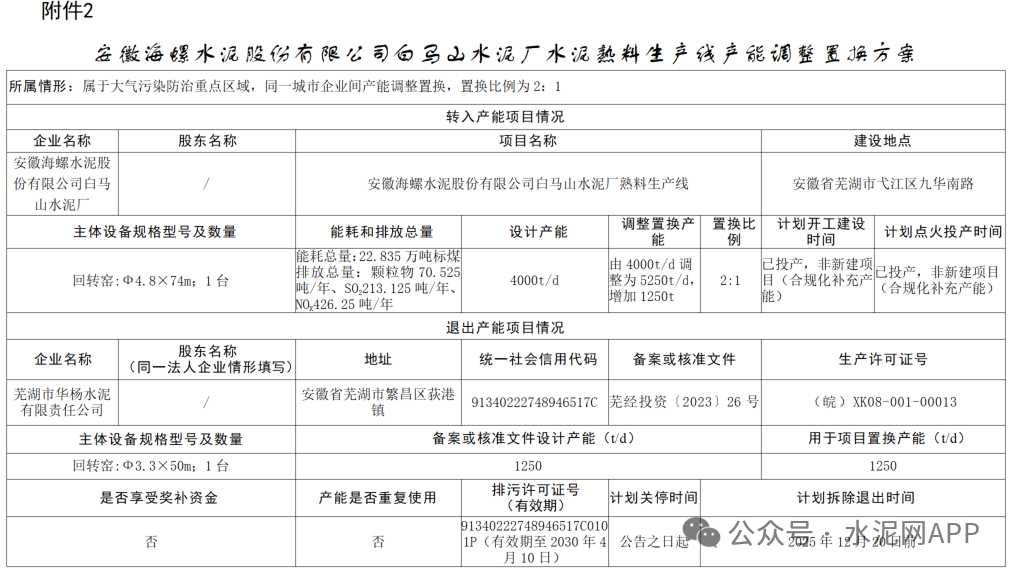 10月16日,安徽省工信廳發(fā)布關(guān)于蕪湖南方水泥有限公司、安徽海螺水泥股份有限公司白馬山水泥廠水泥熟料生產(chǎn)線產(chǎn)能調(diào)整置換方案的公告。