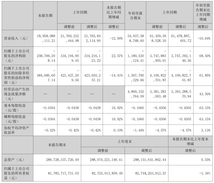 天山股份10月23日晚間發(fā)布三季度業(yè)績公告稱,2025年前三季度營收約549.38億元,同比減少10.64%;歸屬于上市公司股東的凈利潤虧損約11.81億元,虧損同比縮小68.50%。