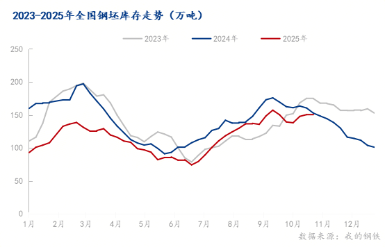 2025年國內(nèi)鋼坯市場的基本面發(fā)生根本性扭轉(zhuǎn)。上半年,供應收縮與下游低庫存策略共同維持了市場的“緊平衡”格局,支撐庫存低位運行。至下半年,需求側成為主要矛盾,下游的利潤壓力與高成品庫存觸發(fā)負反饋機制,導致鋼坯供需轉(zhuǎn)向?qū)捤?,庫存壓力顯著攀升。