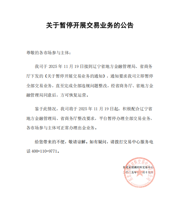 關(guān)于暫停交易業(yè)務(wù)的公告