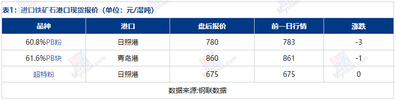 ▌天津進(jìn)口鐵礦石現(xiàn)貨市場(chǎng)價(jià)格小幅下跌 成交一般