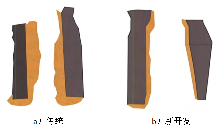 新型浸入式水口(SSB-水口)在反錐形段的上方內(nèi)襯采用新研制的尖晶石-熔劑材料,而反錐形段采用ZG(ZrO2-石墨)材質(zhì)。傳統(tǒng)浸入式水口的整個內(nèi)腔采用氧化鋁-二氧化硅-石墨材質(zhì)。將兩種浸入式水口在同一中間包上進行工業(yè)化應(yīng)用試驗。結(jié)果發(fā)現(xiàn),傳統(tǒng)產(chǎn)品的出口端氧化鋁堵塞嚴(yán)重,而新開發(fā)產(chǎn)品的堵塞較輕,如圖2所示??傊?,新開發(fā)的方坯連鑄用單孔浸入式水口防堵塞效果較好。