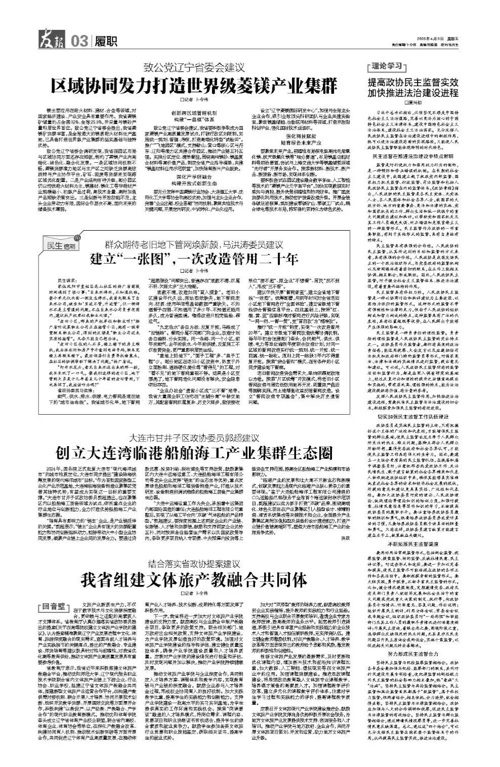 致公黨遼寧省委會建議,我省要積極爭取成為國家菱鎂產(chǎn)業(yè)高質量發(fā)展試點,打破行政區(qū)劃限制,實施統(tǒng)一規(guī)劃、管理、考核,打造高端化轉型“試驗田”。推廣“飛地園區(qū)”模式,支持鞍山、營口等核心區(qū)與丹東、遼陽等潛力區(qū)共建合作園區(qū),推動產(chǎn)業(yè)鏈互補互強。實施分區(qū)定位、清單管控,圍繞高純鎂砂、鎂基復合材料等高價值產(chǎn)品,制定全省產(chǎn)業(yè)指導清單,共建“鎂基材料應用示范聯(lián)盟”,加快培育新興產(chǎn)業(yè)板塊。
