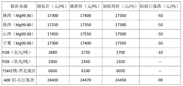 1. 報價原鎂均為符合GB/T 3499-2023《原生鎂錠》標(biāo)準(zhǔn)相應(yīng)牌號質(zhì)量要求的鎂錠;