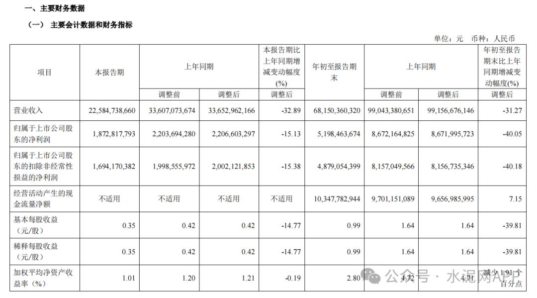 業(yè)績(jī)變動(dòng)的原因主要系本集團(tuán)水泥業(yè)務(wù)產(chǎn)品銷量及價(jià)格同比下降,導(dǎo)致營(yíng)業(yè)收入及利潤(rùn)同比下降。