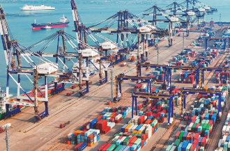 海關(guān)總署12月10日發(fā)布數(shù)據(jù)顯示,今年前11個(gè)月,我國貨物貿(mào)易進(jìn)出口總值39.79萬億元,同比增長4.9%,其中,出口23.04萬億元、進(jìn)口16.75萬億元,同比分別增長6.7%和2.4%,外貿(mào)運(yùn)行總體平穩(wěn)。圖為12月10日拍攝的山東港口煙臺(tái)港國際集裝箱碼頭(無人機(jī)照片)。